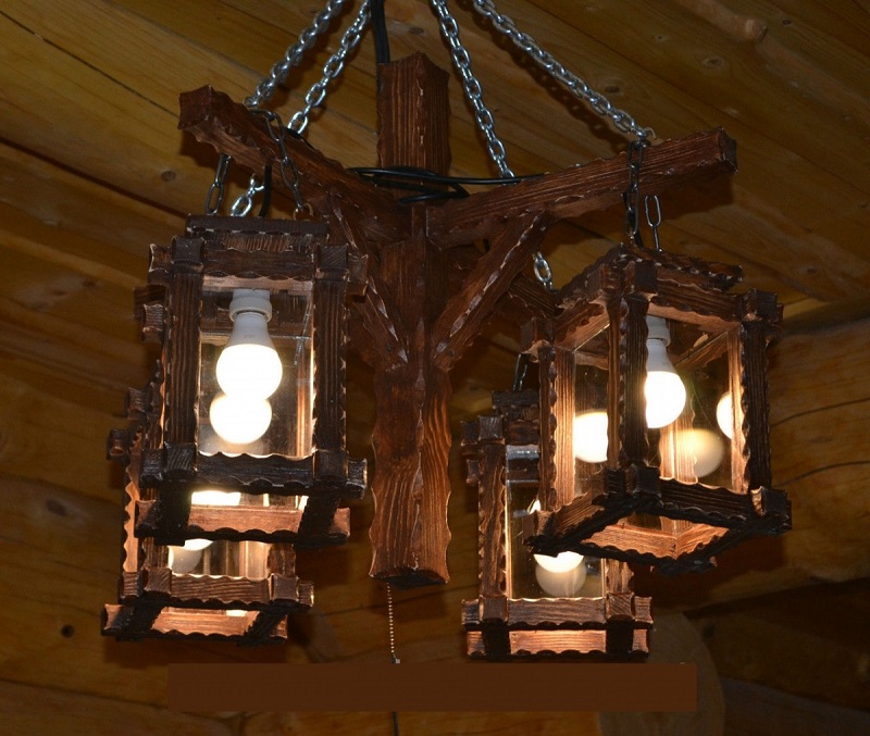 - Люстры для дачи из дерева заслужено считаются едва ли не самым лучшим решением