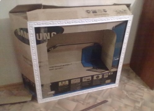 - В качестве основания могут выступать как несколько отдельных коробок склеенных между собой, так и одна большая коробка из-под ЖК телевизора. Для склейки между собой нескольких коробок используется двусторонний скотч;
