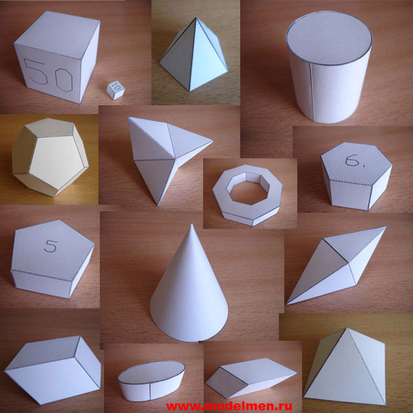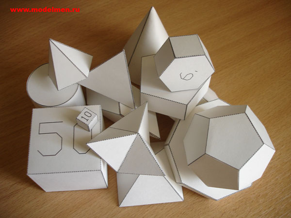 Большой выбор развёрток простых геометрических фигур.