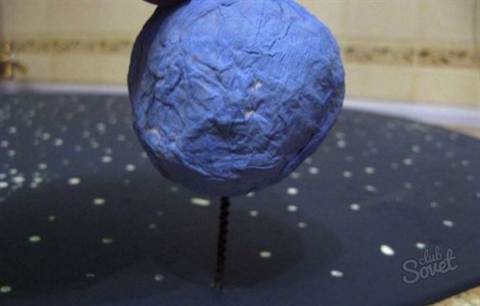 Салфетки нужно разделить на слои и мелко порвать. Шарик — надуть до нужного размера и обвязать нитками, чтобы придать шарообразную форму, а затем наклеить несколько слоёв салфеток, просушивая каждый из них перед тем, как нанести следующий. Когда заготовка просохнет, проткните резиновый шарик иглой и извлеките его. Можно сделать планеты из ниток в той же технике. Для этого понадобятся мулине или хлопковая пряжа. Обмажьте воздушный шарик клеем и намотайте на него нитки в хаотичном порядке, а затем оставьте сушиться, подвесив на зажиме или прищепке. Извлеките шарик, проткнув его.