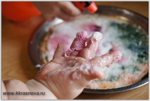 Готовы испытать вулкан? Предупредите детей, что это зрелище не для слабонервных и поэтому надо выйти на улицу. На самом же деле вы страхуетесь от забрызгивания краской пола и вещей.