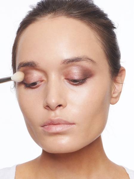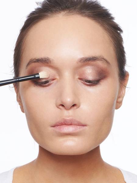 под глазами, освежит кожу, создаст надежную основу для покрытия век тенями. Тональный крем подходящего оттенка выравнивает, делает цвет лица свежим и гладким. - Нанесение теней с тщательной растушевкой