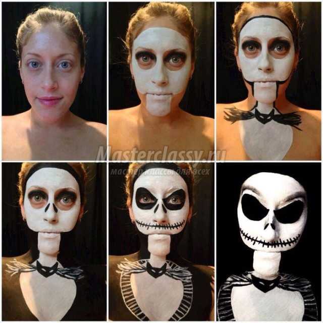 Прикольный макияж на Хэллоуин гуашью — пошаговое видео по мастер-классу