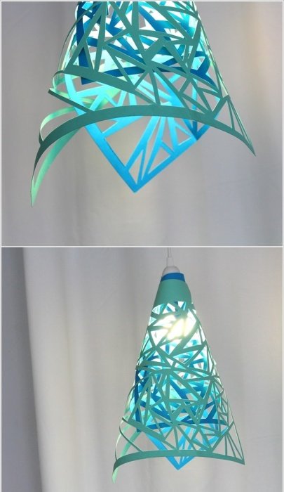 . Метод подходит для всех типов каркаса. Из бумаги вырезаются детали и наклеиваются на каркас. Разноцветная бумага создаёт красивое освещение комнаты, а вырезанные силуэты или произвольные фигуры позволят сотворить неповторимую атмосферу помещения. Такой подход наиболее распространён в Японии, где бумажные изделия пользуются огромным спросом.