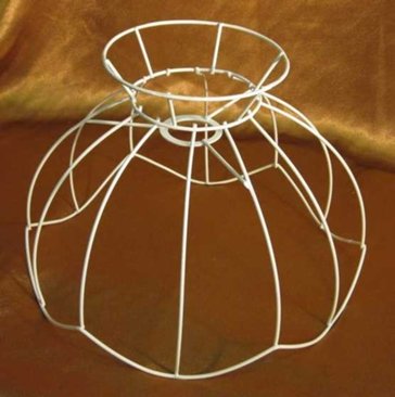 Для учёта всех нюансов рекомендуется заранее нарисовать на бумаге схему светильника и определить размер будущего каркаса. Из самой толстой и гибкой проволоки диаметром около 4 мм. изготавливается каркас любой формы. Наиболее простой считается полусферная форма каркаса. Вспомогательными предметами при выполнении работы может стать всё, что имеет форму, подходящую для абажура. Это поможет создать правильную форму каркаса, поскольку при изготовлении деталей рекомендуется использовать вспомогательный предмет как шаблон. На начальном этапе изготавливается нужное количество колец и рёбер будущего каркаса, которые закрепляются тонкой проволокой и фиксируются клеем.