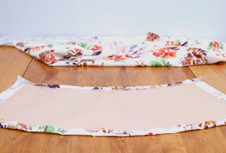 Еще один нюанс состоит в том, что пришивать верх ткани нужно будет прямо на каркасе, а это означает, что он (каркас) обязан быть цельным. В ином же случае, если есть возможность продеть его непосредственно в ткань, то первоначально следует подогнуть верхний край выкройки и прошить, а затем отгладить утюгом. Затем прострачиваем шов сбоку изделия.