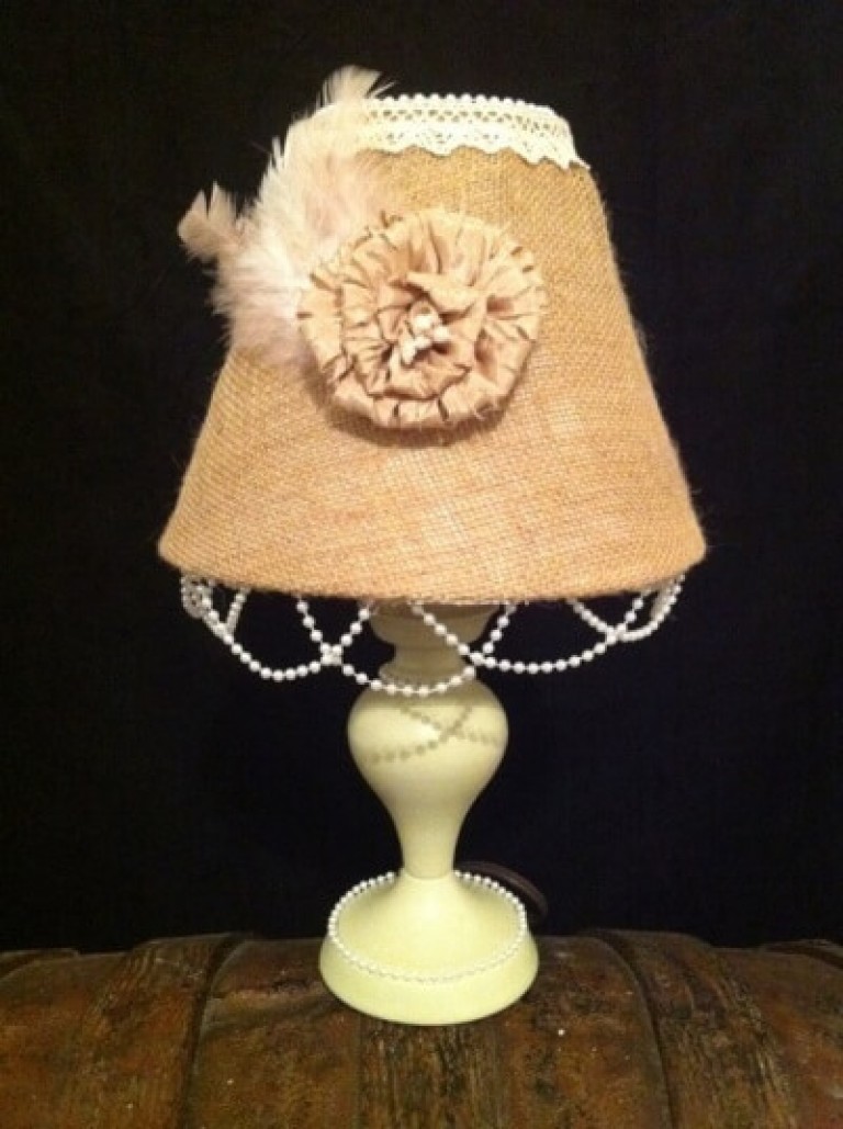 Для создания эффектного освещения в комнате, так же можно сделать люстру из ткани или бусин. В результате получится некий канделябр или плафон в стиле «шебби-шик».