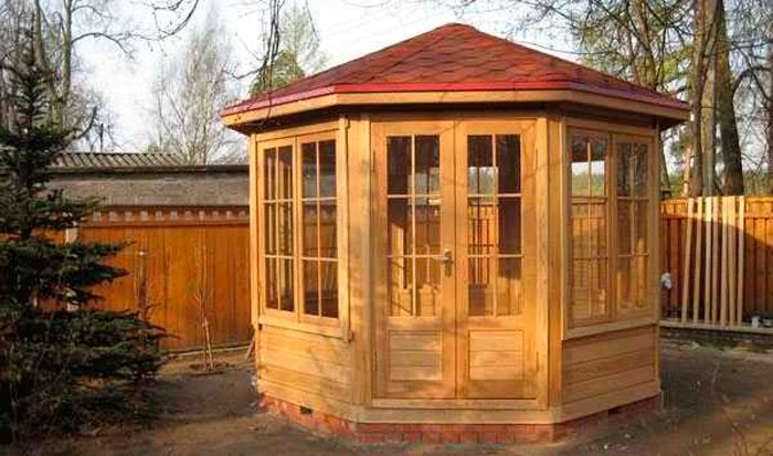 Этот материал считается классическим для постройки такого рода сооружений, как беседка маленькая: