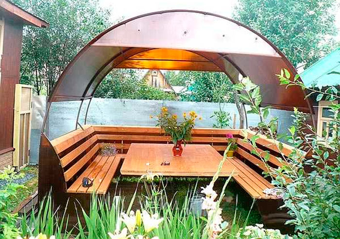Вы сами своими руками можете легко и просто сделать крышу для беседки – из любого кровельного материала.