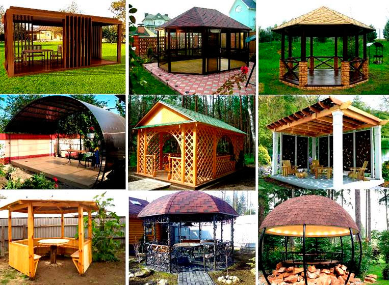 В основном типы беседок рассматривают по двум критериям: конструкции и используемые материалы.