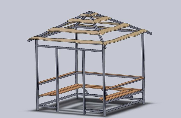 То есть, я хочу, чтобы вы поняли одну вещь. Крышу – можно сделать ЛЮБУЮ. Обшивку стенок (досками, тентом или деревянной рейкой) – можно сделать ТОЖЕ ЛЮБУЮ. И это очень просто. Даже женщина справится.