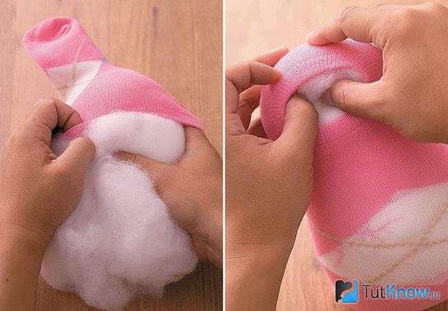 Затем берем синтепон и набиваем игрушку.