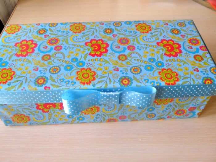 При желании смастерить своими руками необычную коробку для подарка или хранения предметов можно взять за основу готовое изделие. Хорошей основой для декора послужат обувные коробки, они прочные и удобные по форме.