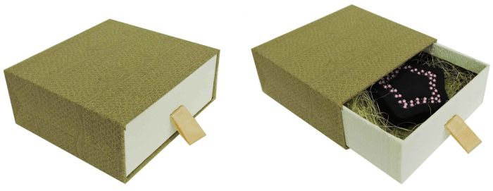 Пожалуй, это самый распространенный вид подарочных коробочек. В переводе с французского, ее название означает конфетница. В высоких, объемных дарят рассыпные сладости, вроде глазурованных орехов. В плоских – хрупкие конфеты с начинкой.