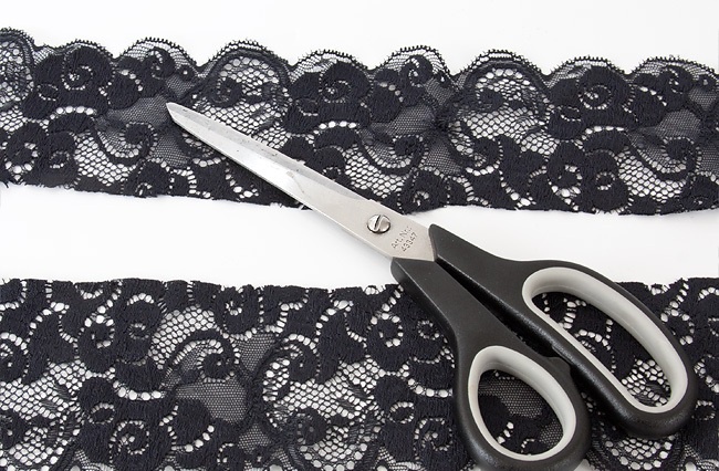 Отрезаем кружева длиной около 1 метра. Если кружева слишком широкие, можно разрезать их вдоль пополам.