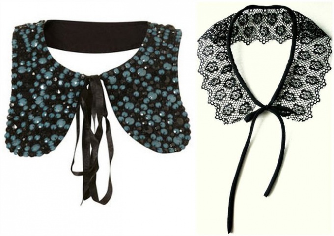 В настоящее время актуальны различные съемные воротнички. Носить их можно с любой одеждой, желательно у которой нет воротника. Необязательно, чтобы воротничок повторял форму и изгибы ворота одежды. Можно носить его и просто как колье.