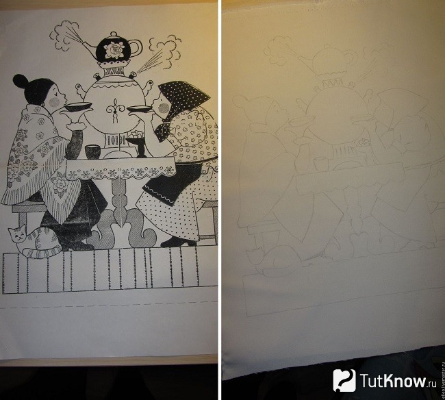 - Плотный картон накрывается осветленной качественной мешковиной.