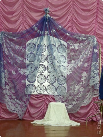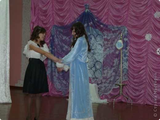 4 дня и 4 ночь мы дружно резали 720 снежинок для оформления штор, гладили их и склеивали скотчем. Очень кропотливая и долгая работа, и мы её с честью выполнили.