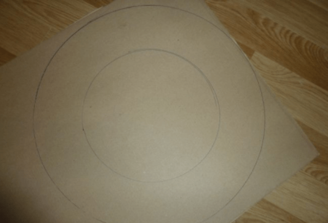 - На плотном картоне рисуем круг, вырезаем с помощью острых ножниц или канцелярского ножа.