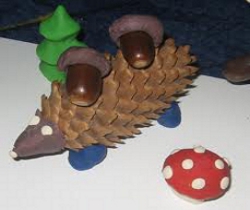 Популярными являются осенние поделки из шишек и желудей. Из шишки делают туловище, из желудя — голову.