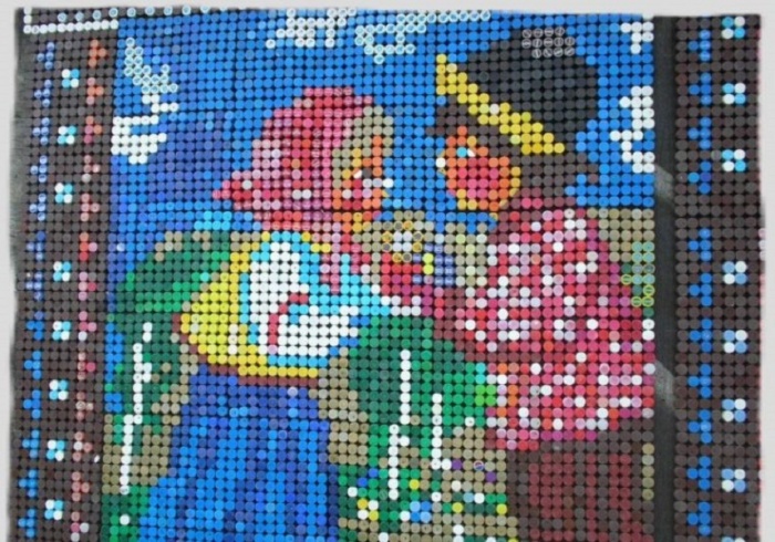 Мозаика из крышек от пластиковых бутылок – очередной вариант оригинальной поделки. Препятствием может стать потребность в большом количестве пробок, поэтому на помощь по сбору зачастую привлекаются знакомые и соседи. Вариантов изготовления поделок в форме мозаики несколько, основное отличие заключается в поверхности, на которой она будет располагаться.