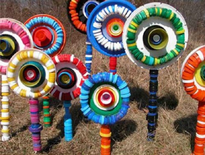 Выполнить из бутылочных крышек можно практически все. Этим умело пользуются многие дачники. Рекомендовано применять пробки разных расцветок, форм, тогда дизайнерские творения будут выглядеть оригинальнее. Сочетать применение крышек можно с пластиковыми бутылками и другими, казалось бы, ненужными вещами. Главное – подключить фантазию и все обязательно получится. Работа потребует терпения, поэтому можно подключить родных и близких. Действовать сообща интереснее!