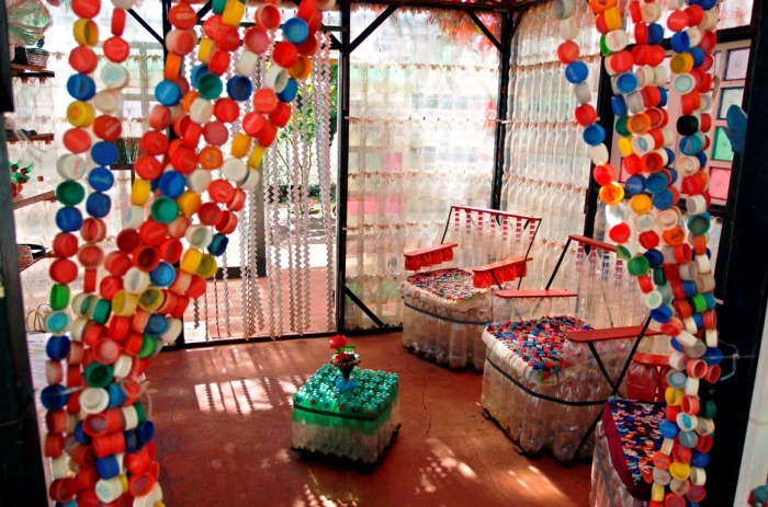 Беседки, задекорированные крышками от бутылок