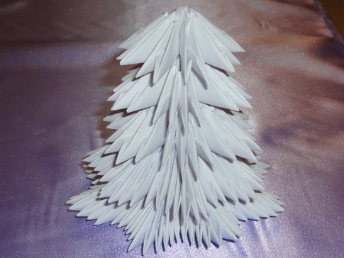 Очень красиво смотрится елочка из модулей. Работа кропотливая, но результат того стоит. Модули складывают по схеме и собирают в веточки. В итоге форма елочки всегда может быть разной.