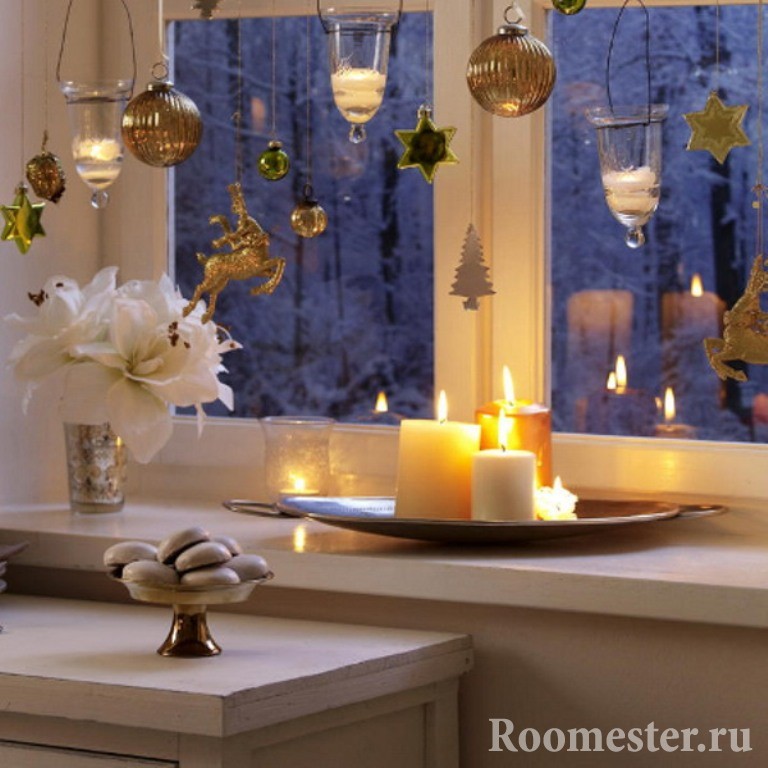 Обычно стекла декорируют гирляндами и целыми световыми завесами, поднимающими настроение не только владельцам помещения, но и прохожим и напоминающими о тепле домашнего очага и скором наступлении праздника.