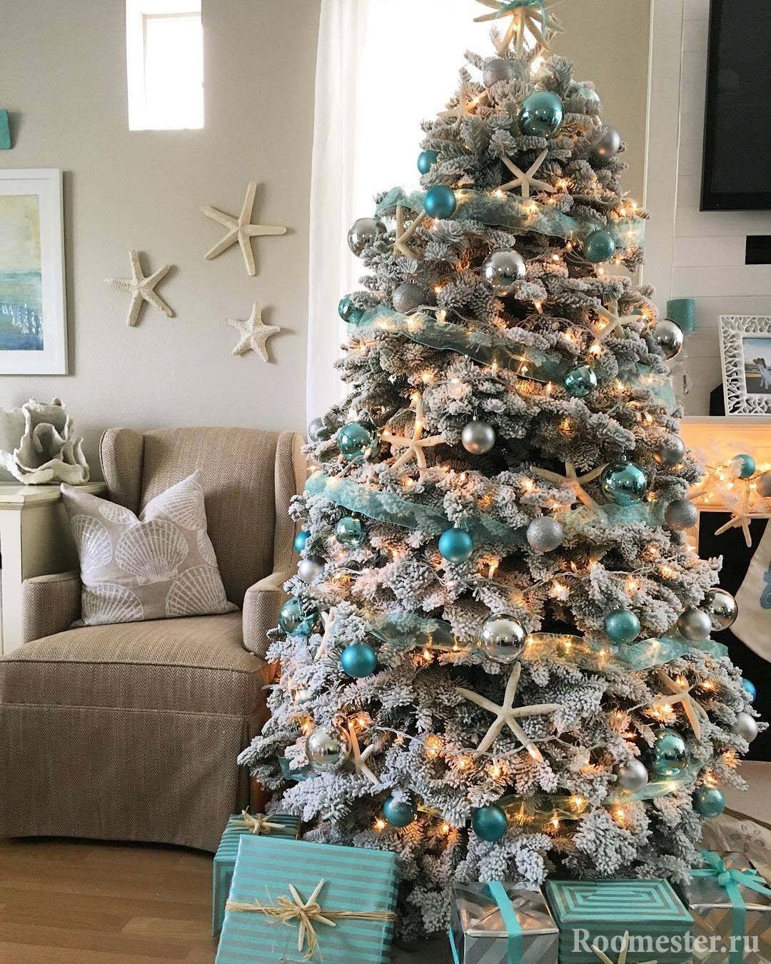 И в завершении праздничного образа елки украсьте веточки новогодней красавицы искусственным снегом.