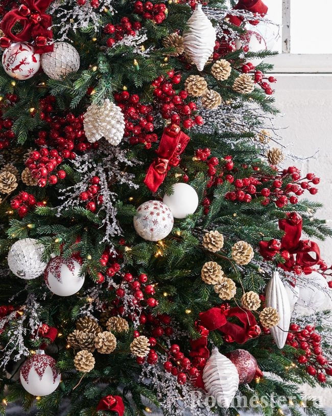 Главный атрибут Нового года – красавицу елку в 2016 году лучше украсить игрушками и мишурой пурпурно-красного либо ярко оранжевого цвета.