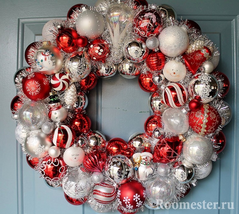 Вместо привычной мишуры используют шпагат или шерстяные нитки, ветки или шишки, даже новогодние шары станут отличным компонентом для создания уникального творения.