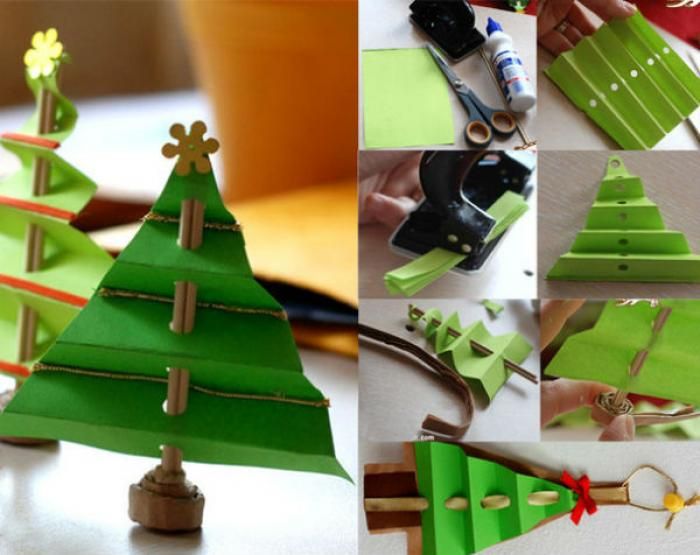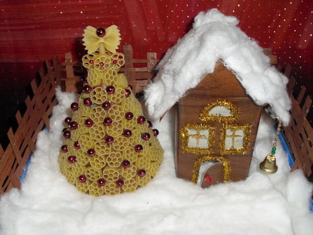 1. Символом этого праздника является ёлка, и вид у классической зеленой красавицы может быть различным. Уникальной и привлекательной её можно сделать со всевозможного материала, который имеется у вас дома: из бумаги, шишек, фетра, конфет и даже из…макаронных изделий.