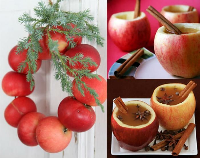 Может яблоки это и не новогодний фрукт, но венок из яблок и яблочная чашка — смотрятся очень празднично.