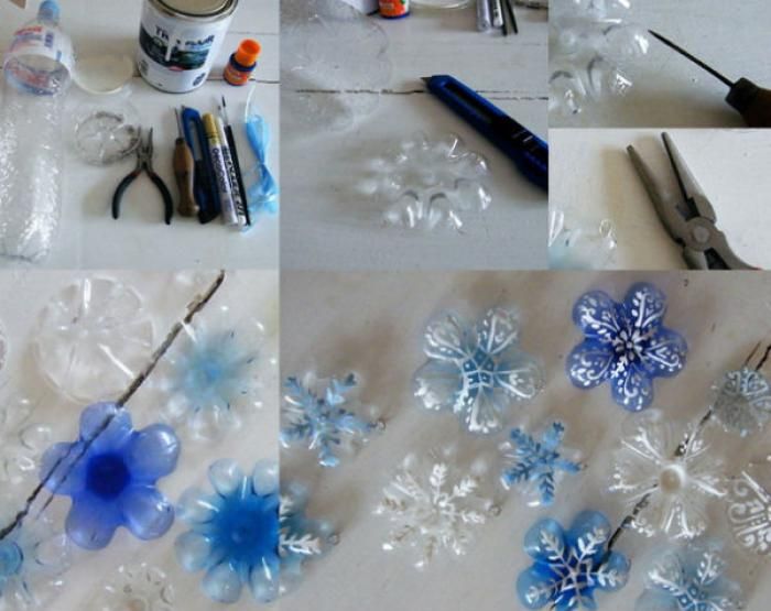 Снежинки из пластиковых бутылок своими руками.