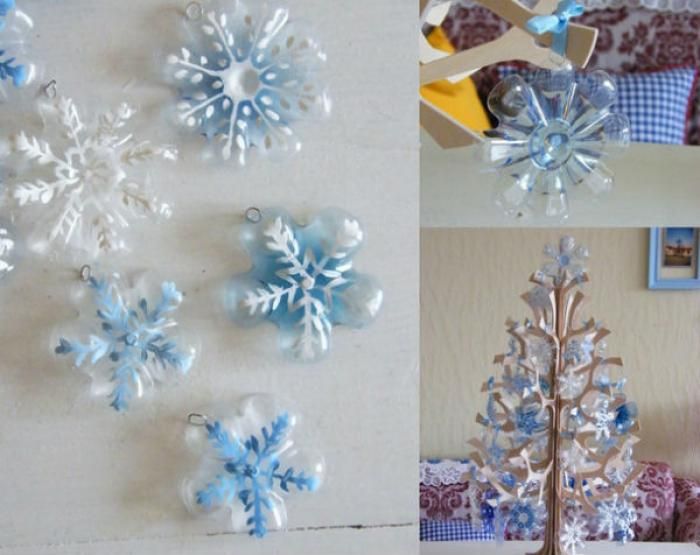 Подвески-снежинки из пластиковых бутылок