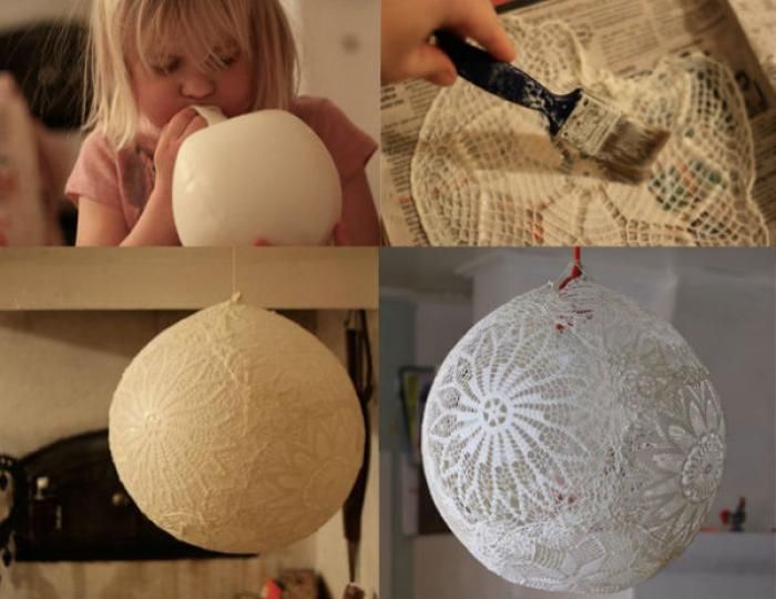 Кружева, клей и шар. Кружева лучше брать легкие.