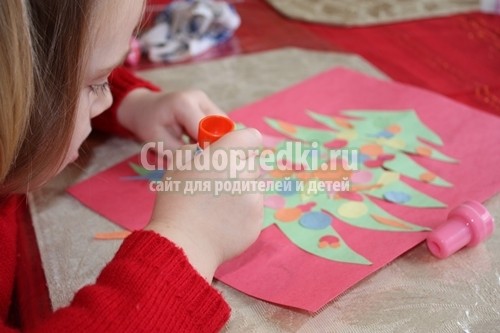 Красивая елочка из ватных дисков