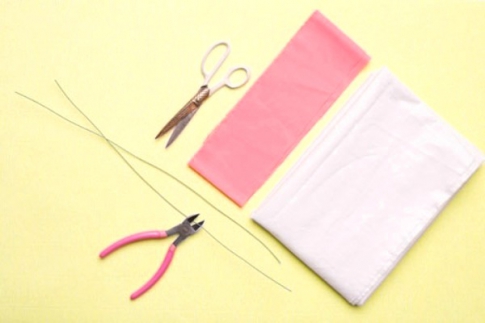 Возьмите пакеты для мусора двух цветов, разрежьте их, сделав одно сплошное полотно, и соорудите костюм … дождя, например.