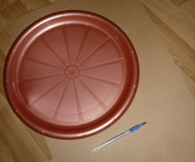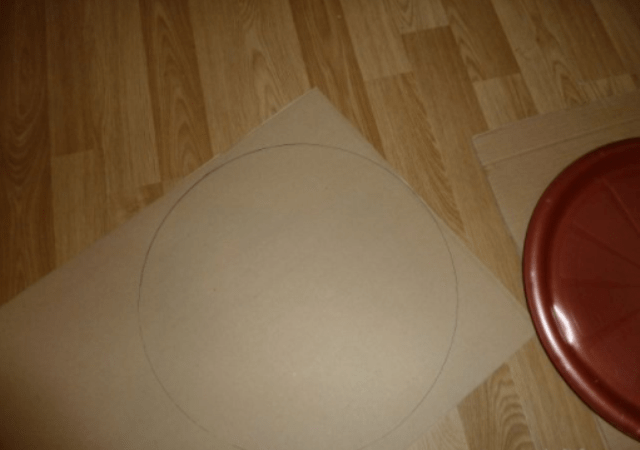 Необходимо вырезать небольшой круг из куска картона. Он будет служить основой для украшения.