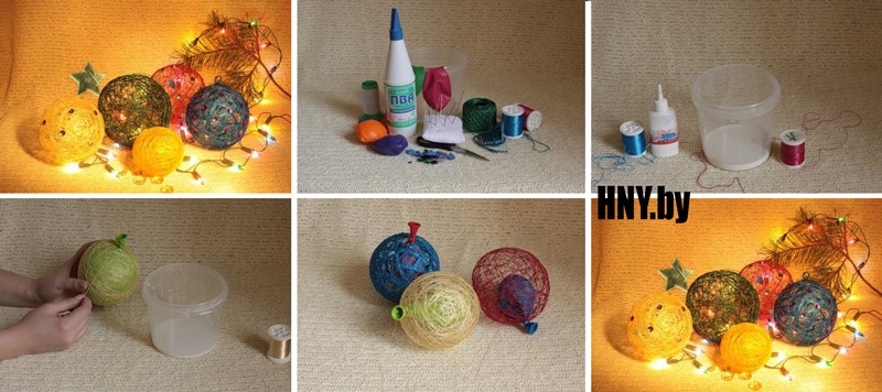 - Затем их поверхность следует обмотать нитками, используя клей.
