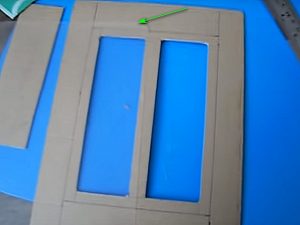 Шаг третий. Размечается картонное основание клапана. Поначалу на картоне намечается контур отдушины (по горизонтали и вертикали отступы от краев должны быть одинаковыми). Далее намечаются окошки клапанов.