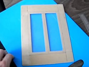 Шаг второй. Основу для клапана образует картонная рамка. Вырезать ее не составит труда. Ее размеры должны соответствовать размеру и форме вентиляционной решетки, ведь она будет находиться за этой решеткой.