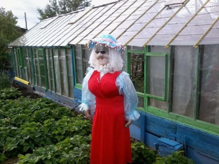 Пугало должно пугать только птиц, поэтому совсем необязательно делать страшную и мрачную куклу. Чем оно ярче и креативнее, тем необычнее будет выглядеть ваш дачный участок. А огородное пугало, сделанное из пластиковых бутылок, отпугивать незваных пернатых будет не только внешним видом, но и звуками. Однако такую куклу следует устанавливать подальше от дома, чтобы в ветреную погоду звуки не мешали вам спать.