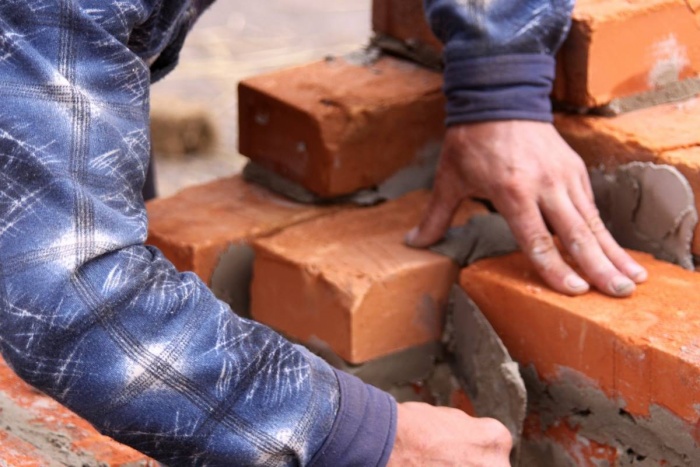 Процесс укладки кирпича:
