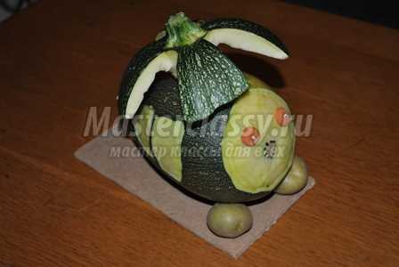 Помимо кабачка удлиненной и выпуклой формы, потребуются морковь и несколько зубочисток. Сам процесс работы должен протекать без спешки, пошагово согласно представленному мастер-классу.