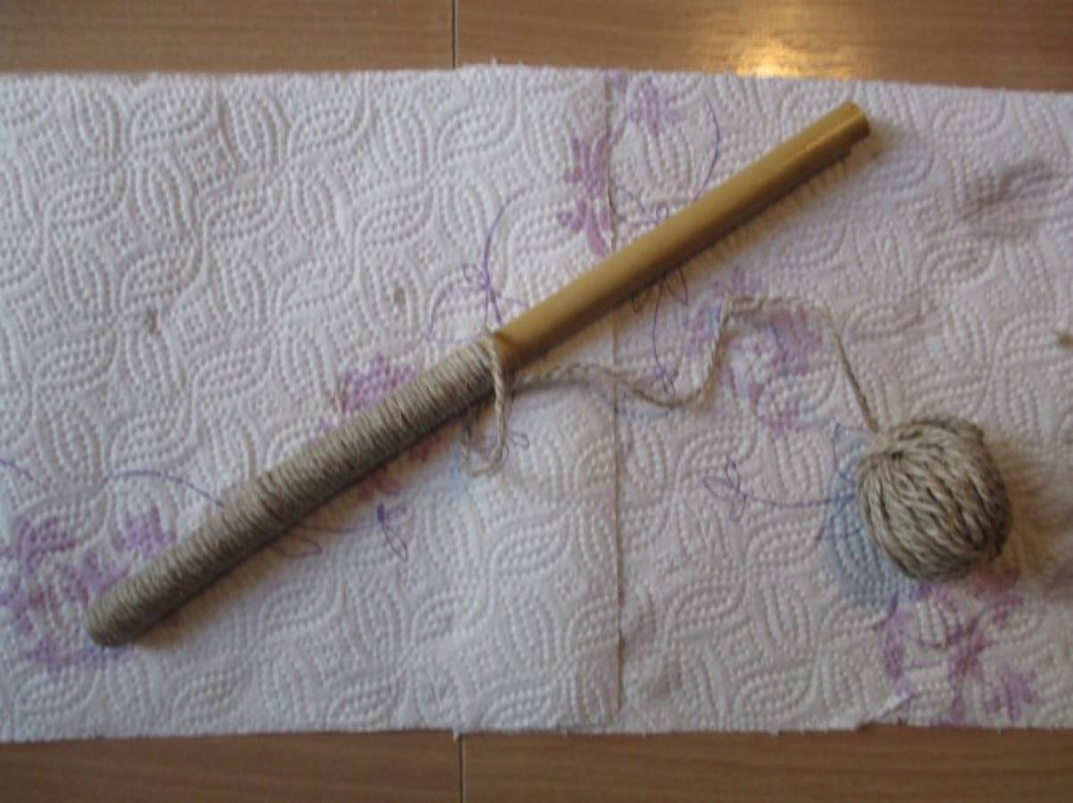Палочку (ствол) намазываем клеем ПВА и обматываем шпагатом, и, тоже оставляем сушиться.