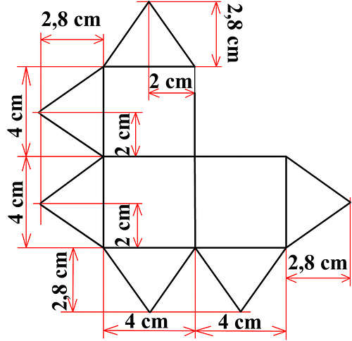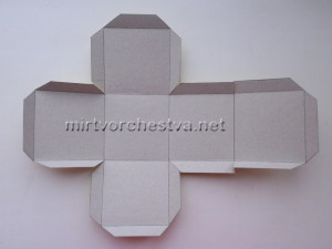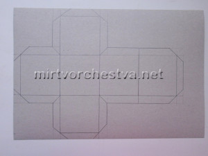 - Итак, вроде 6 квадратов начерчены, теперь для их соединения, нужны небольшие припуски. Чертятся они по бокам 3-ёх квадратов. При этом их ширина должна быть до одного сантиметра. Вырезаем схему и приступаем к склеиванию поделки. Важно не забыть, подрезать уголки припусков, так как качественней и удобней проводить работу.