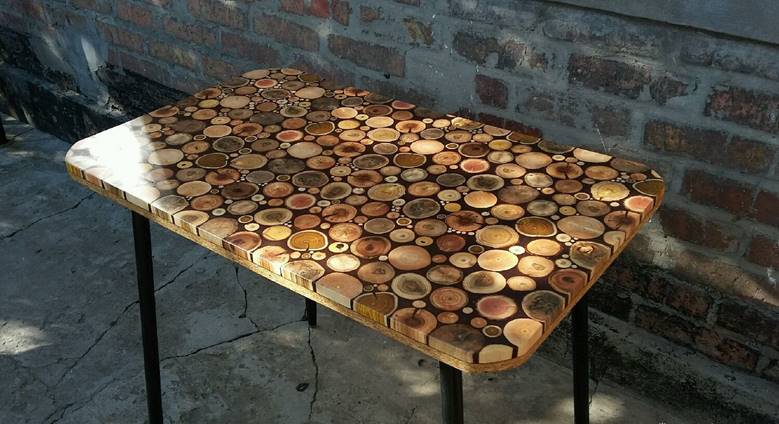 В качестве ножек может отлично послужить не только бревно, но и старый пень:
