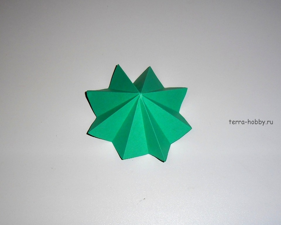 Теперь начинаем ее складывать по имеющимся заломам. Но при этом складки делаем поочередно то в одну, то в другую сторону. У нас получается как бы гармошка, что идет по кругу. Снизу эта заготовка будет выглядеть вот так. Фото 11.